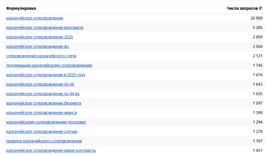 Подготовили релевантные объявления в Яндекс Директ, использовали ключевые запросы целевой аудитории, такие как «казначейское сопровождение», «банковское сопровождение контрактов», «казначейское сопровождение по 44 фз»